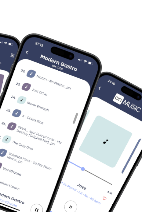 OnMusic.fm A new quality of music free from collective management organizations. Discover our application OnMusic.fm™ – an independent music label Download the app for iOS Download the app for Android An independent music label offering music free from collective management organization fees Satisfied clients 0 + Hours in the studio 0 + Artists 0 + Cups of coffee consumed 0 + Discover Our Strengths Savings By working with us, you are completely exempt from all fees associated with collective management organizations. Premium Music We collaborate with top artists from around the world, ensuring you get the best quality at an affordable price. Legal Security When you partner with us, you receive a signed license from the copyright owner – guaranteeing the legal use of our music. Audio Marketing Carefully curated music packages enhance your venue’s identity and strengthen your brand, ultimately boosting your profits. Explore Solutions designed for your business Everything your restaurant needs Learn more Everything your beauty business needs Learn more Everything your industry needs Learn more Blog Learn more about our solutions 2025-02-06MusicSpotify – Can you play music publicly?Spotify is one of the most popular streaming platforms in the world, offering a vast selection of music… Read MoreSpotify – Can you play music publicly?2025-01-19MusicThe Psychology of Sound – How Music Influences Customers’ Purchasing DecisionsMusic is more than just background noise in service and retail spaces – it is a powerful tool… Read MoreThe Psychology of Sound – How Music Influences Customers’ Purchasing Decisions2025-01-05MusicGood Music and Customer Mood – How It Affects Their Behavior and SpendingMusic plays a crucial role in creating the atmosphere in service venues such as restaurants, cafés, beauty salons,… Read MoreGood Music and Customer Mood – How It Affects Their Behavior and Spending